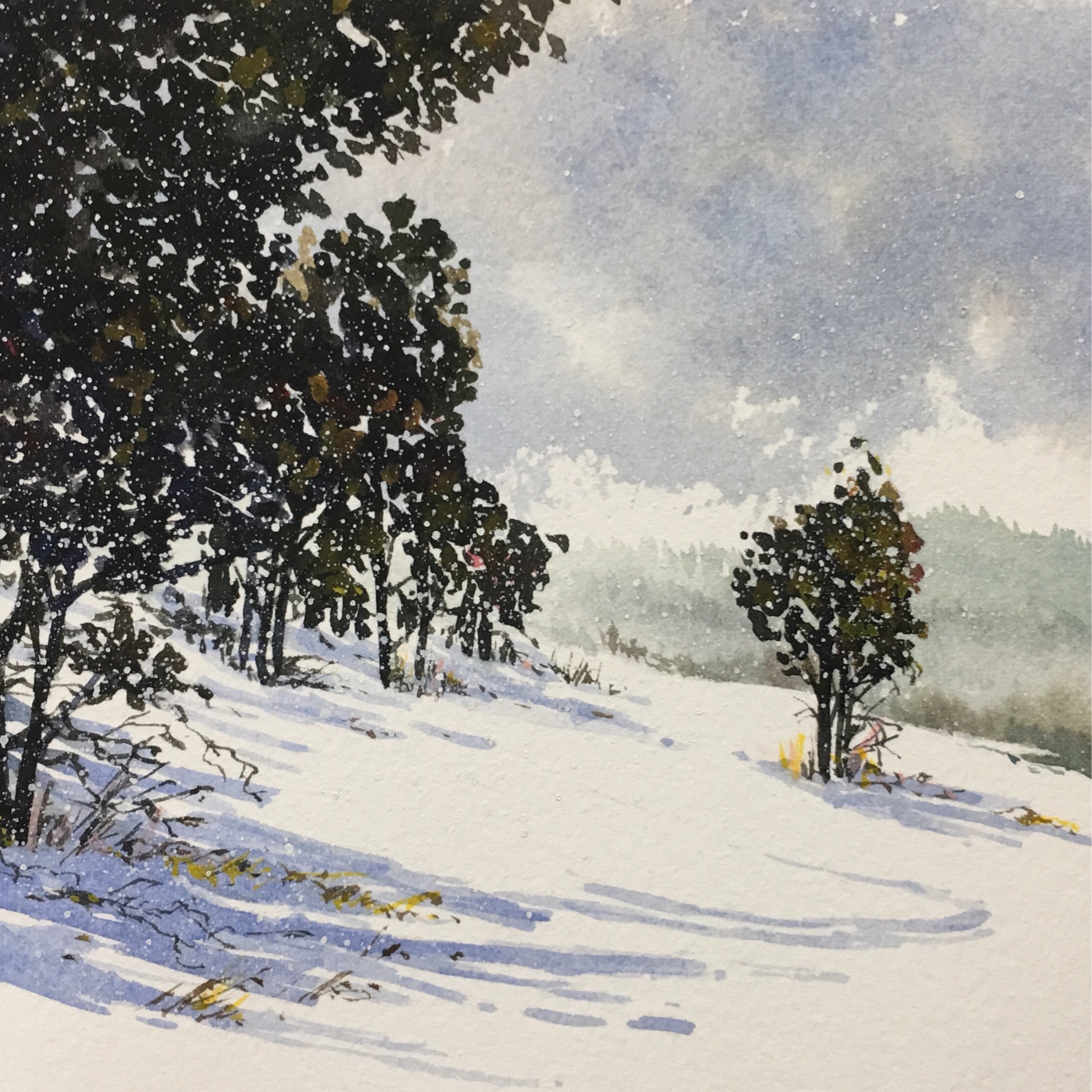 5×8 original watercolour on Arches 140 lb paper, double matted in an 11×14 wood frame