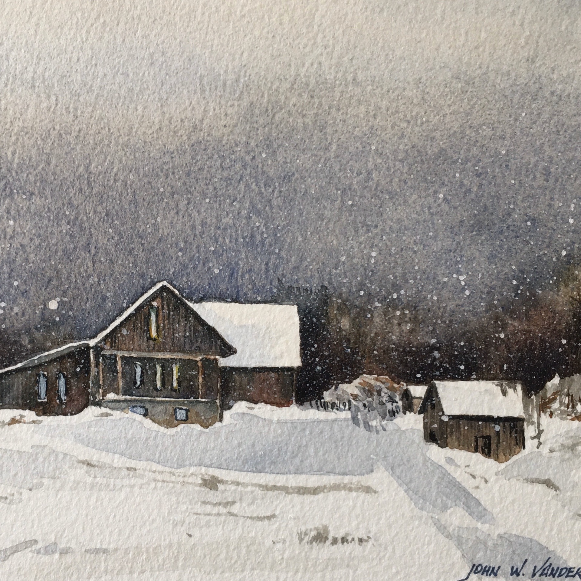 5×8 original watercolour on Arches 140 lb paper, double matted in an 11×14 wood frame
