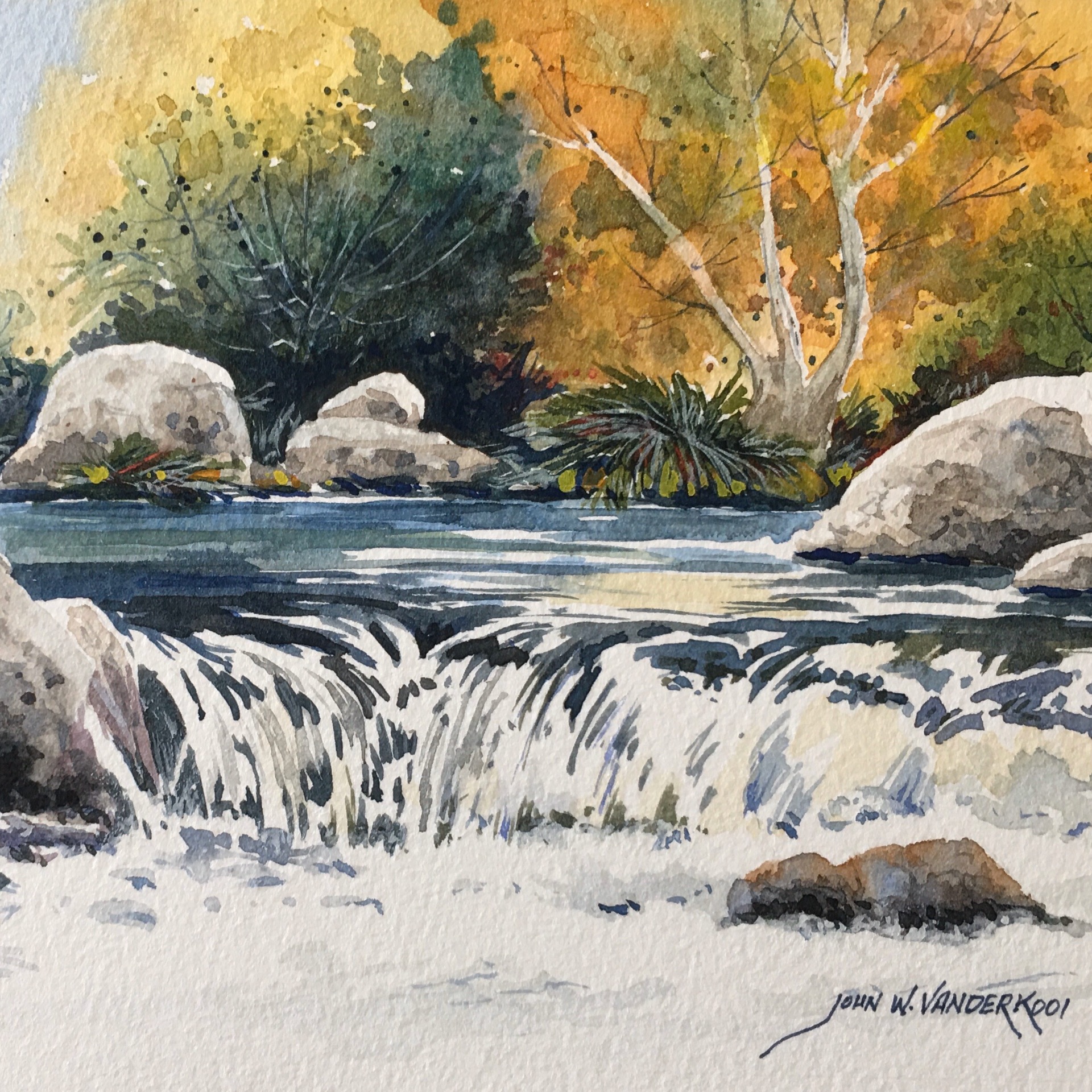 5×8 original watercolour on Arches 140 lb paper, double matted in an 11×14 wood frame